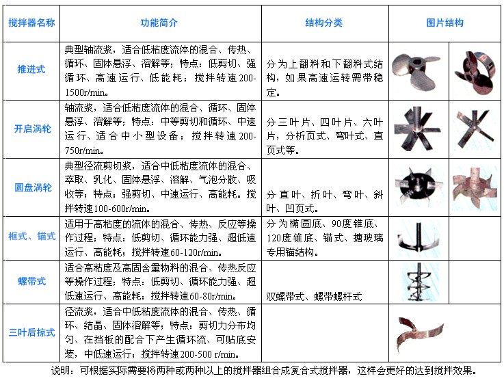 攪拌器主要參數及尺寸(僅供參考):